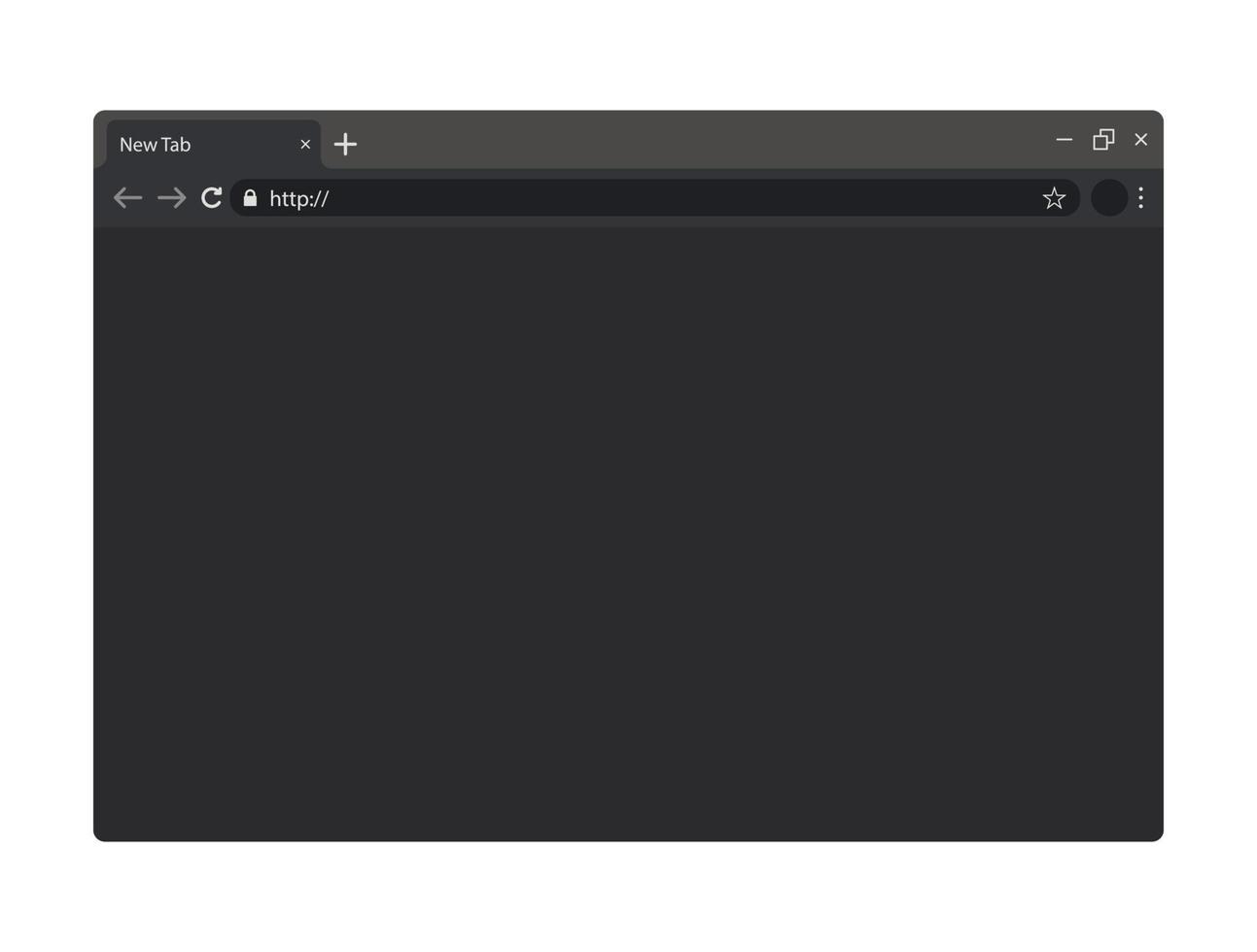 Dark grey empty browser page with toolbar, address and search bar. Flat blank mockup for website page. Vector Pro Vector