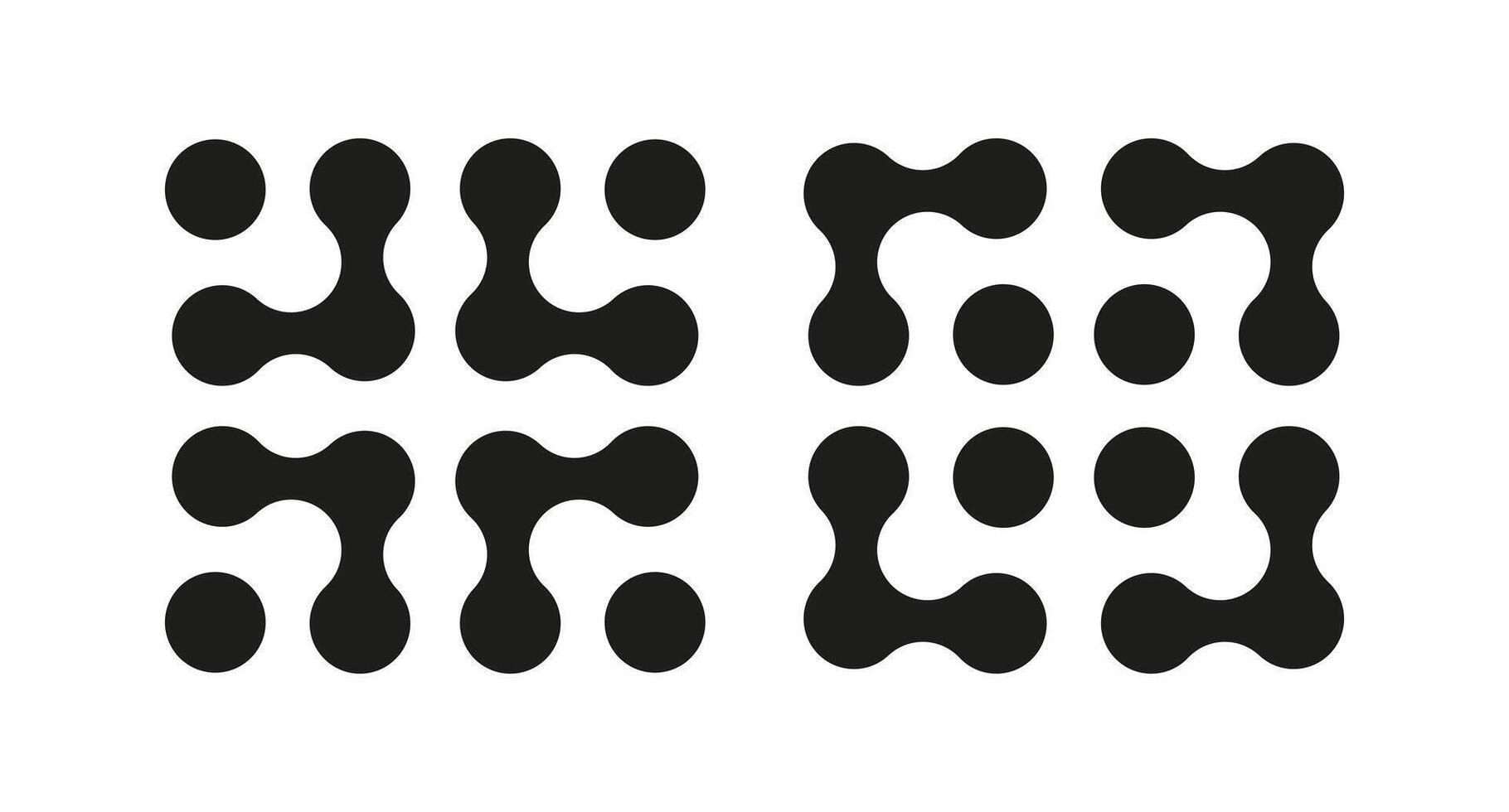 Metaball icons mockup Connected dots minimalist signs. Integration abstract simple symbol. Circles trendy pattern. Point movement template. Connected blobs layout. Metaballs transition. Flat logos set Pro Vector