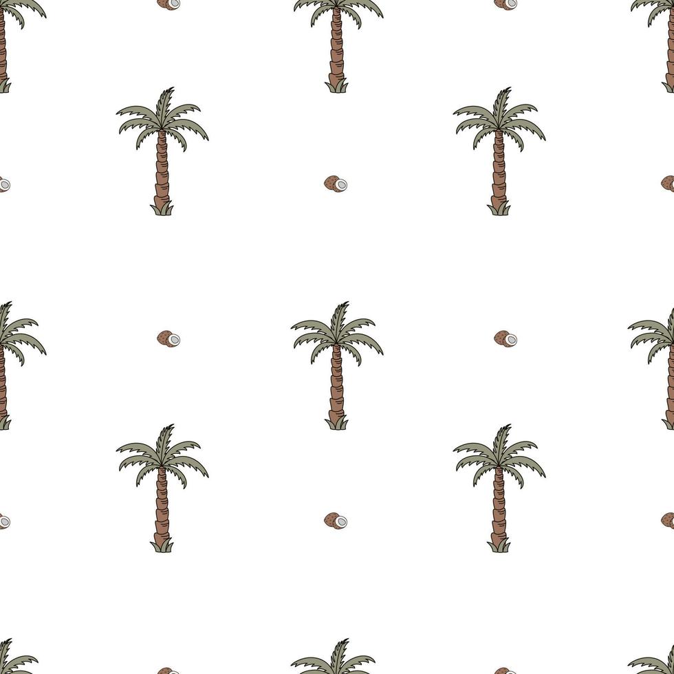 Hand Drawn Vector Seamless Pattern With Palm Trees And Coconuts. Pro Vector