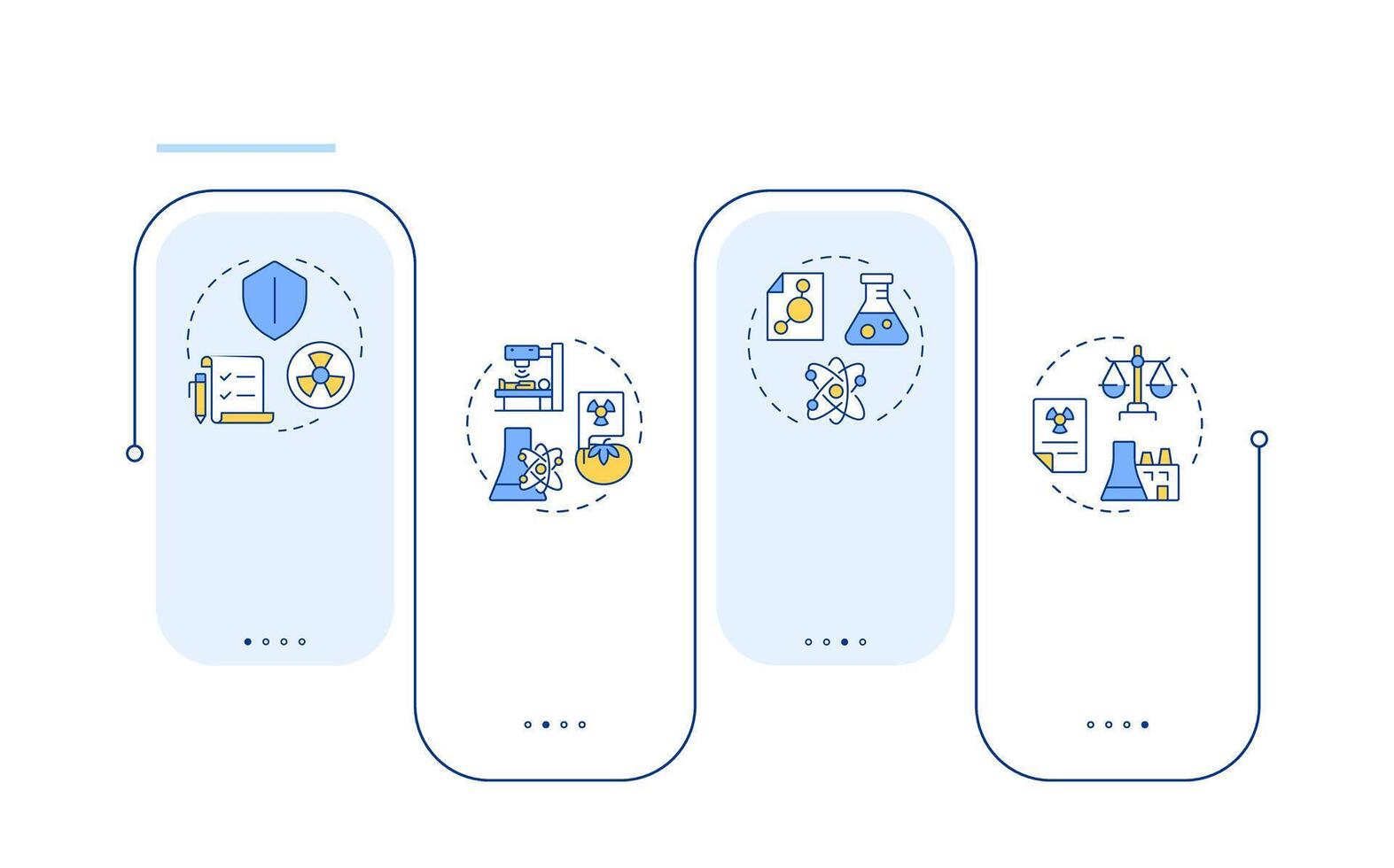 Nuclear applications rectangle infographic . Industries using radioactive materials. Data visualization with 4 steps. Editable rectangular options chart Pro Vector