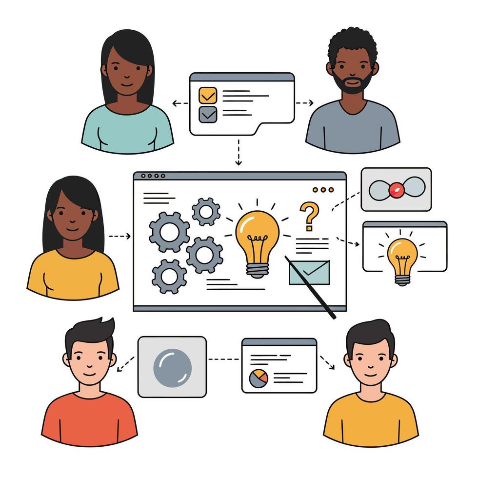 Remote Team Brainstorming With a Virtual Whiteboard on a White Background Pro Vector