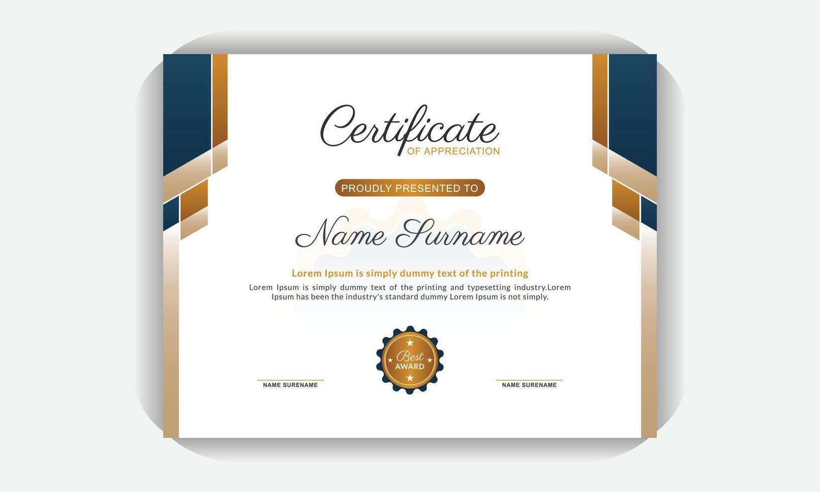 Print ready Certificate template, simple and modern background, elegant blue and gold diploma certificate template, elegant certificate of appreciation template Pro Vector