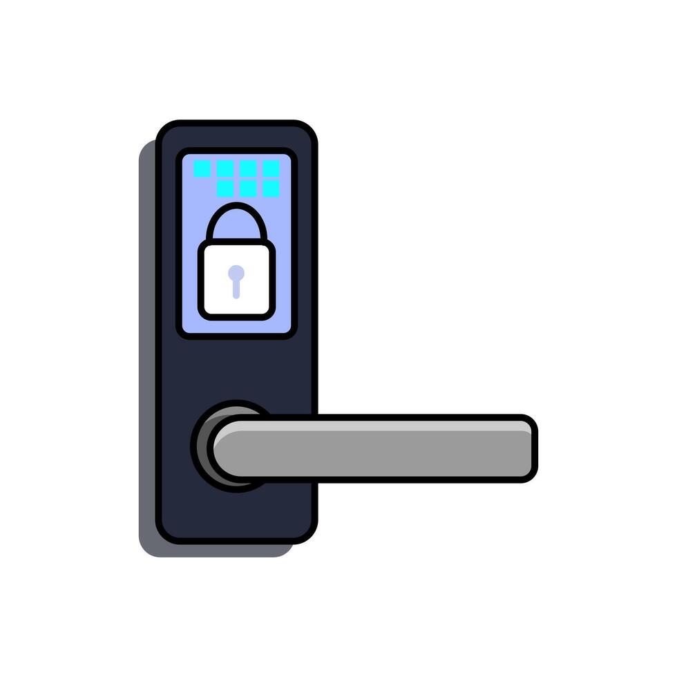 A digital door lock with a keypad and a lock icon displayed on a screen, representing modern security technology. Pro Vector
