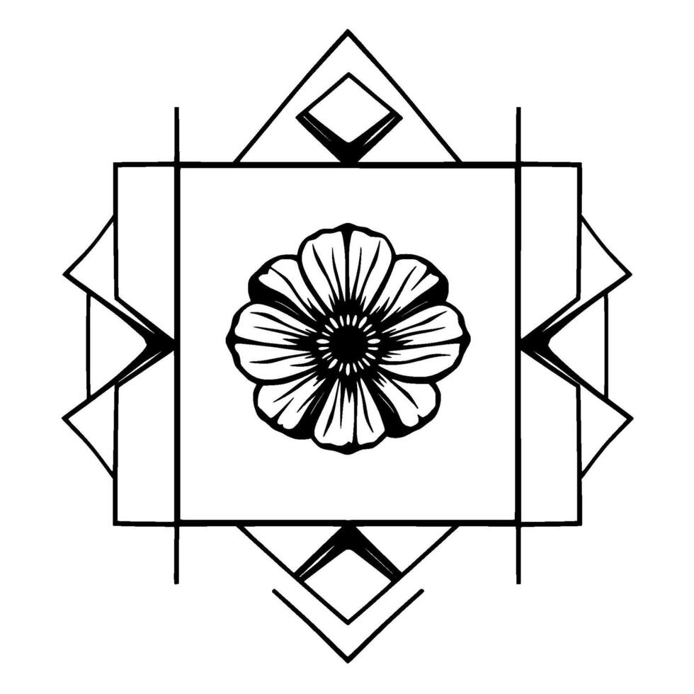 Geometric Black and White Floral Mandala, Symmetrical Centered on Flower within Square and Angular Shapes. Pro Vector