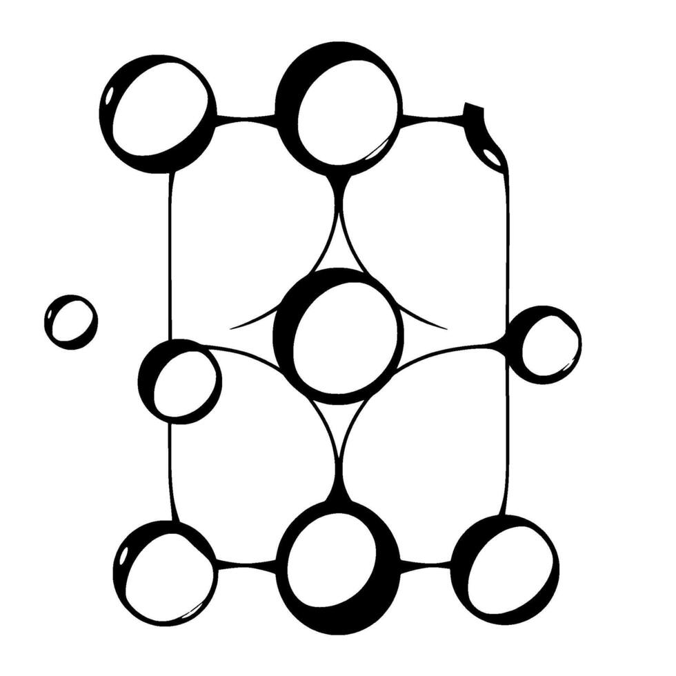Abstract Black and White Composition of Connected Circles and Lines, Suggesting a Network or Molecular Structure on a White Background. Free Vector