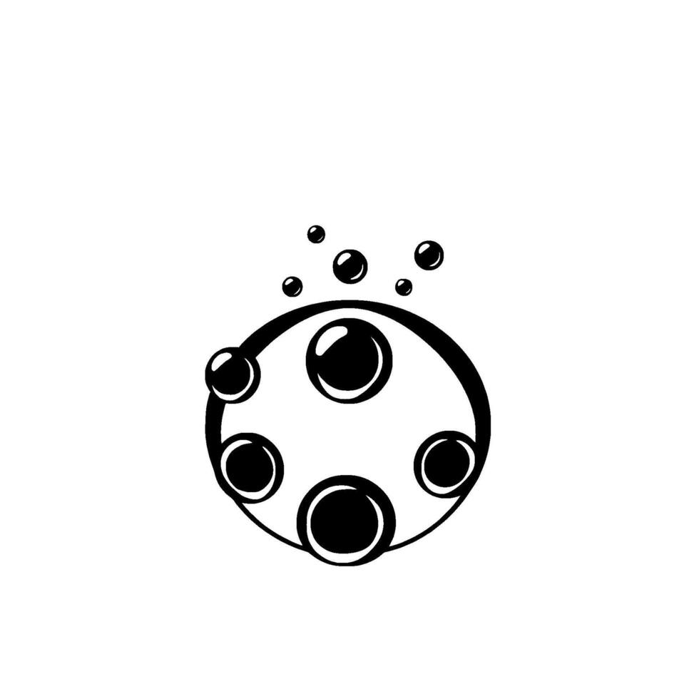 Abstract black and white featuring a circular frame with multiple bubblelike elements, surrounded by smaller floating bubbles, creating a modern, minimalist aesthetic. vector