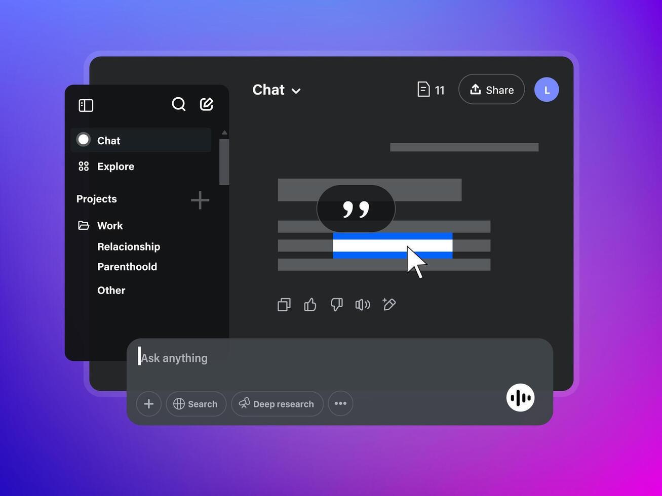 Reply features in Ai chat. Web browser with Artificial intelligence chatting text on screen. illustration Pro Vector