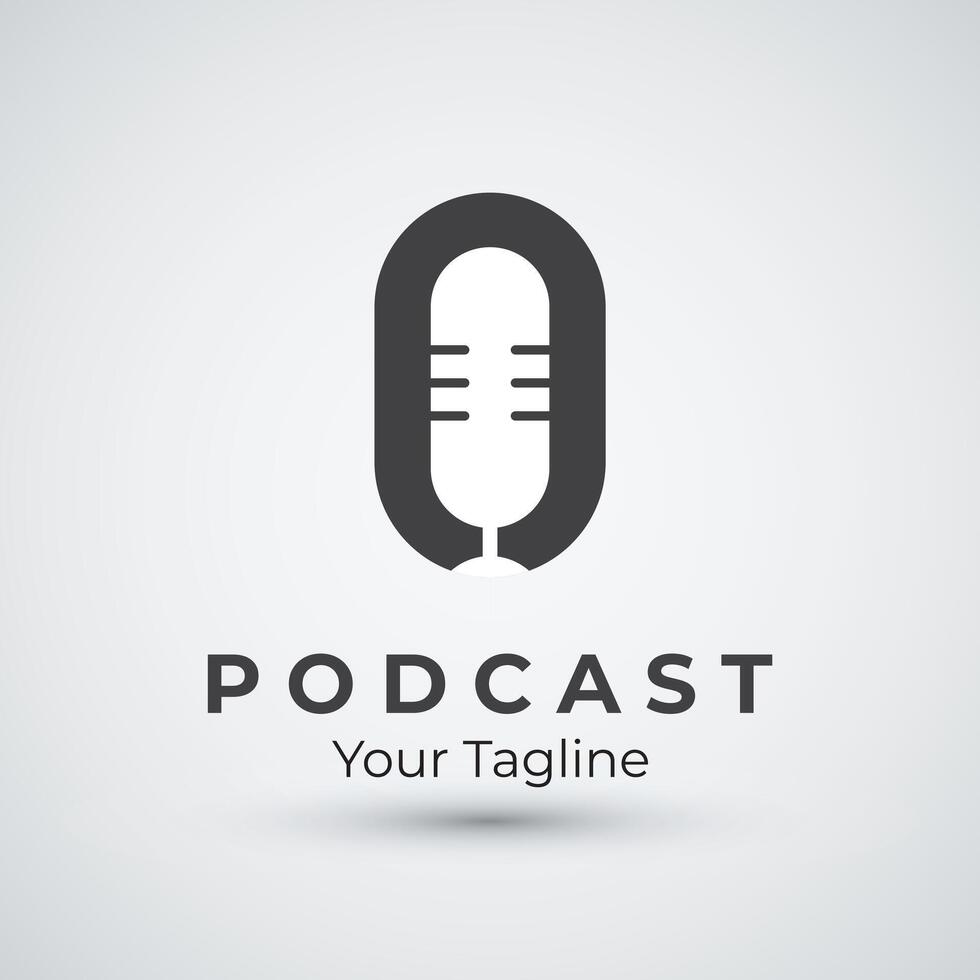 new podcast logo template design with modern trendy microphone audio Podcasts for studio interview multimedia and web design Pro Vector