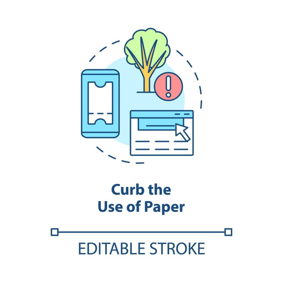 Curb use of paper concept icon. Save trees and forest. Minimize waste abstract idea thin line illustration. Isolated outline drawing. Editable stroke. Roboto-Medium, Myriad Pro-Bold fonts used Pro Vector