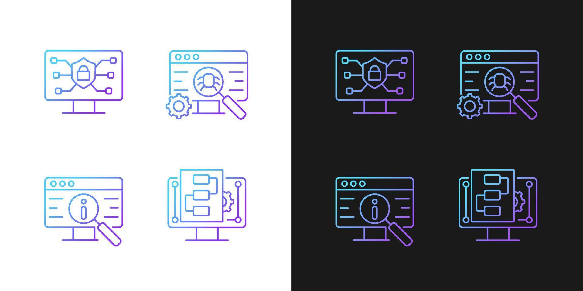 Use of digital technologies gradient icons set for dark and light mode. Staying safe online. Thin line contour symbols bundle. Isolated vector outline illustrations collection on black and white Pro Vector and Pro SVG