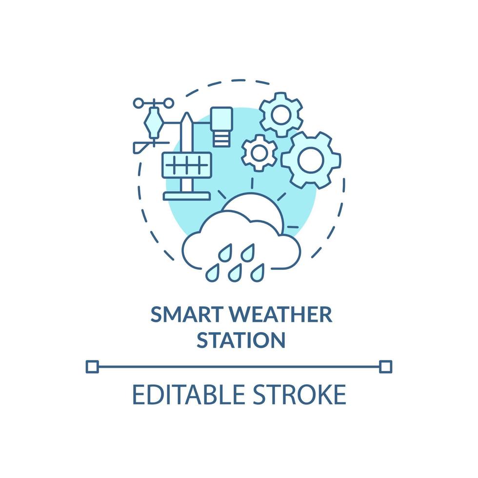 Smart weather station turquoise concept icon. Temperature and humidity detection abstract idea thin line illustration. Isolated outline drawing. Editable stroke. Arial, Myriad Pro-Bold fonts used Pro Vector