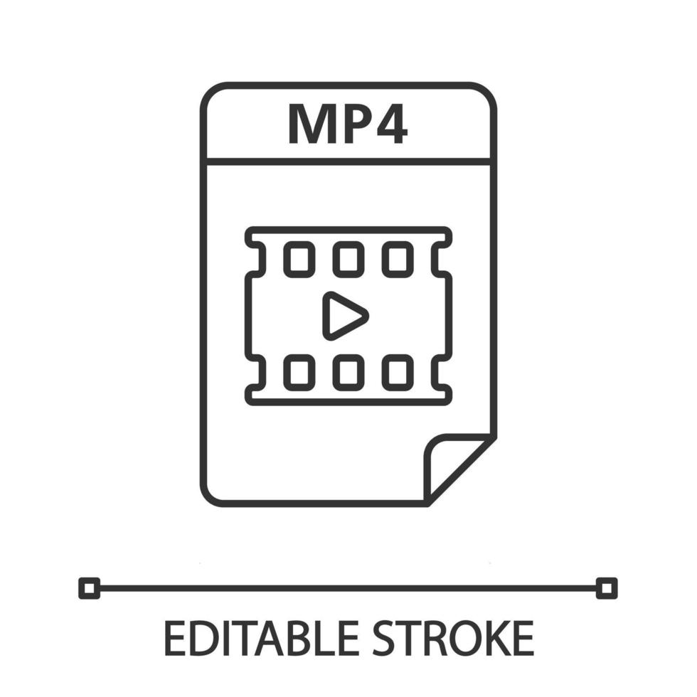 MP4 file linear icon. Multimedia file format. Video and audio document. Thin line illustration. Contour symbol. Vector isolated outline drawing. Editable stroke Pro Vector