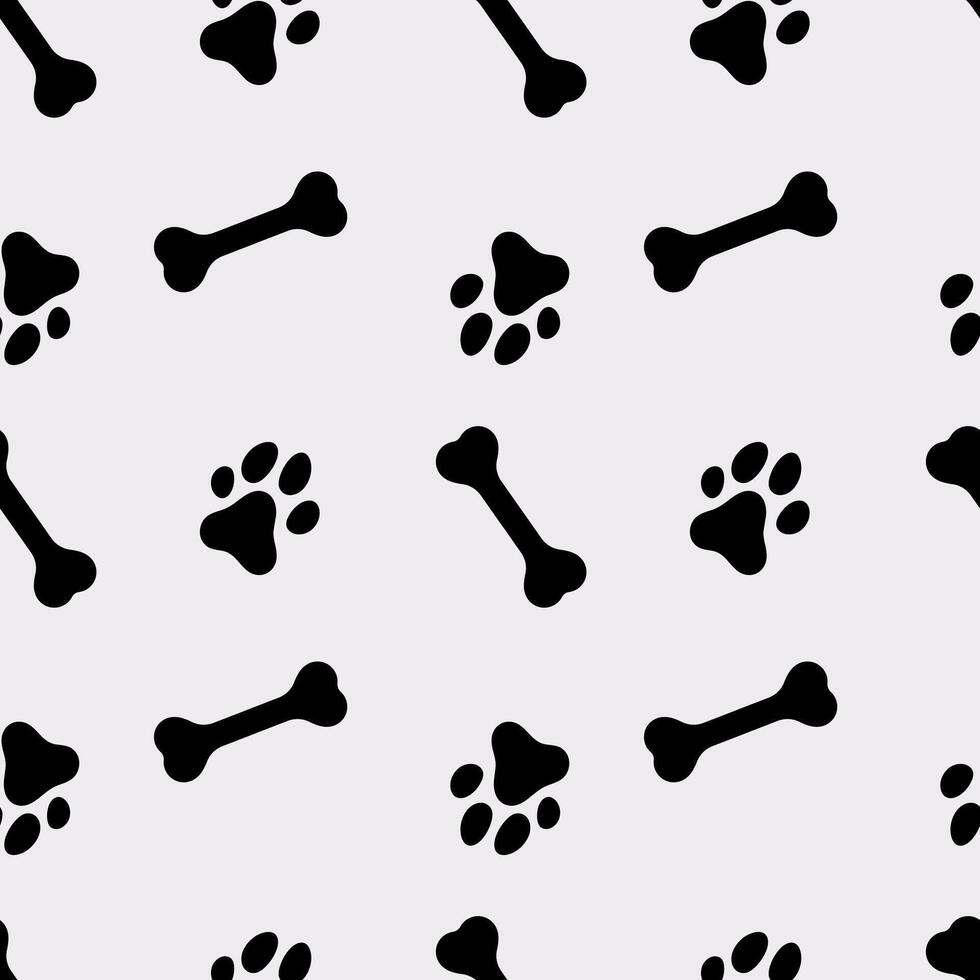 Dog Paw Seamless pattern. Dog footprint and bone repeating pattern. Black and white pattern with dog tracks and bones Pro Vector