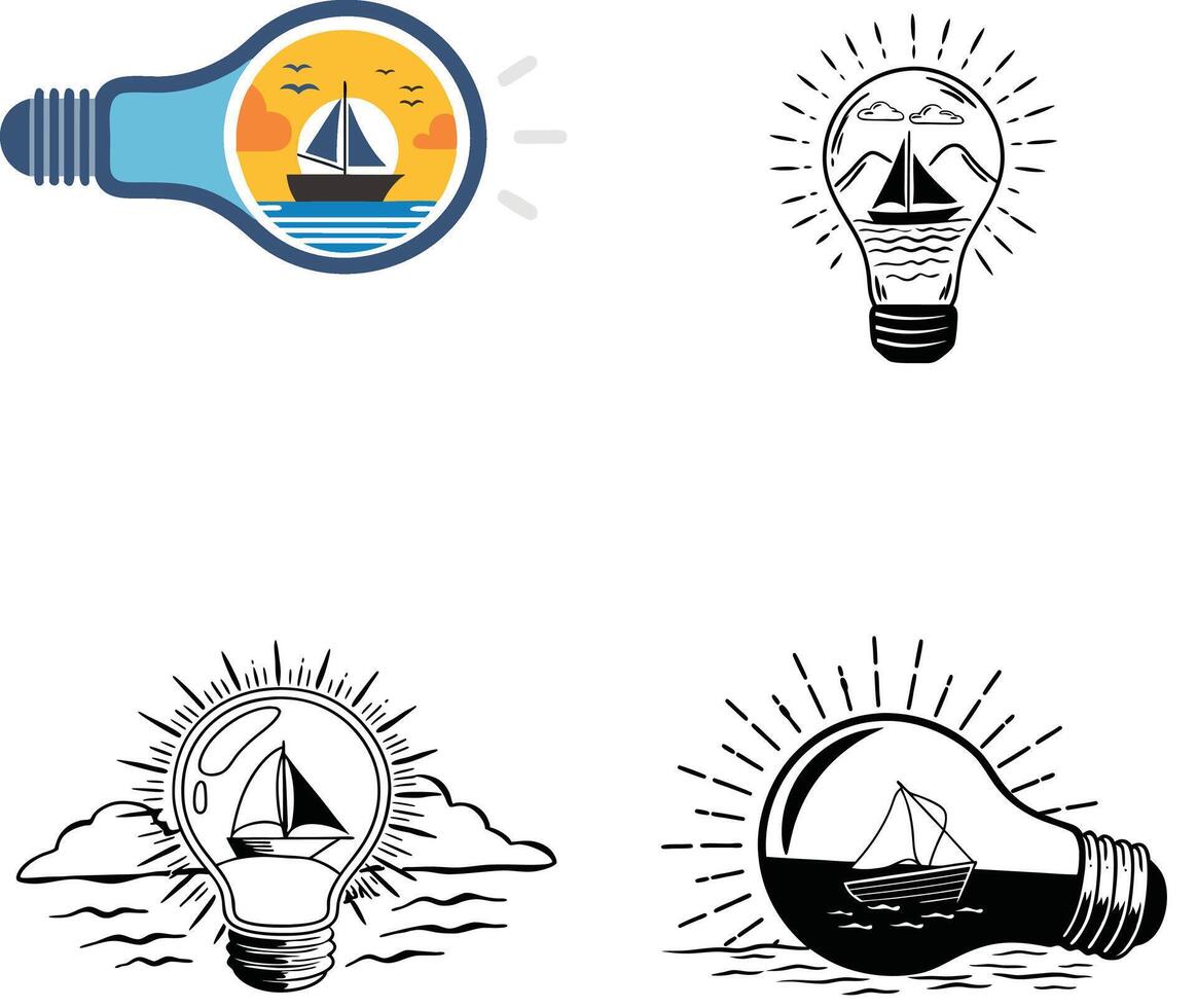 Stylized Illustrations of Light Bulbs Indicating Robotics, AI, and Global Networking for Idea Generation Themes. vector