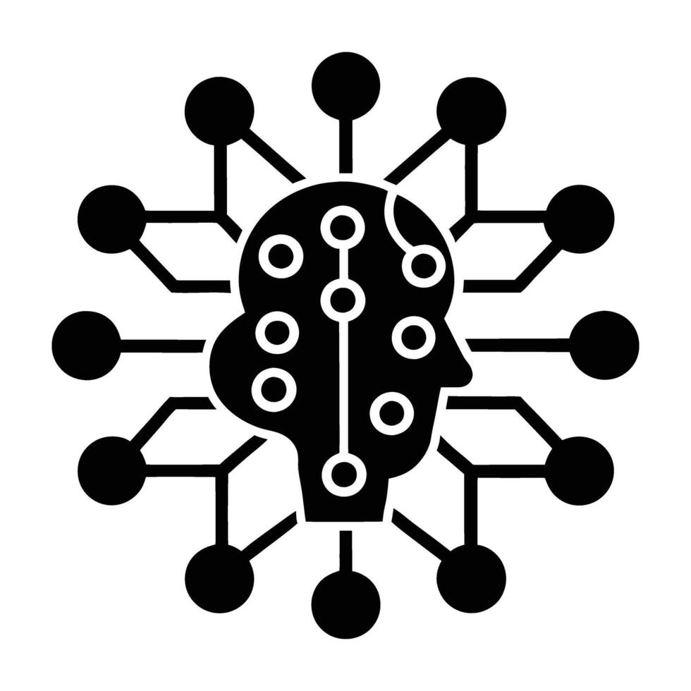 AI driven machine learning network silhouette displayed isolated on white background vector