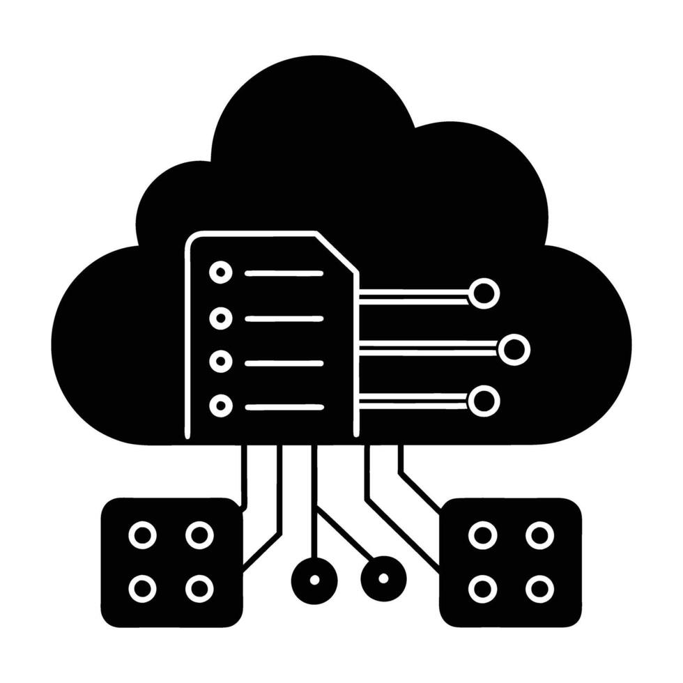 Cloud computing server powered by AI silhouette isolated on white background vector