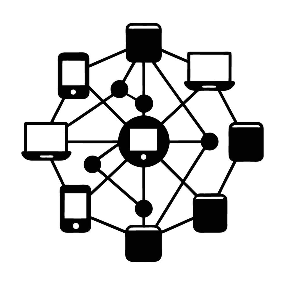 Network with multiple devices connected digital silhouette isolated on white background vector