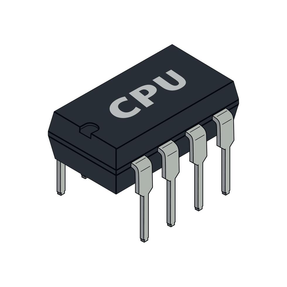 gray computer microprocessor chip CPU on white background Pro Vector