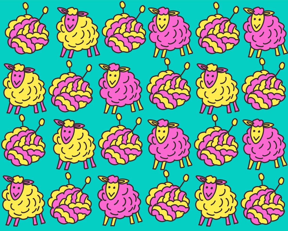 Seamless pattern with sheep and wool thread. Vector illustration Pro Vector