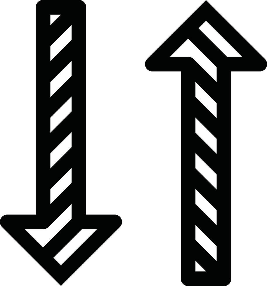 Simple illustration of upward and downward arrows symbolizing contrasting directions, choices, navigation, and movement in a clear and bold graphic format. Pro Vector