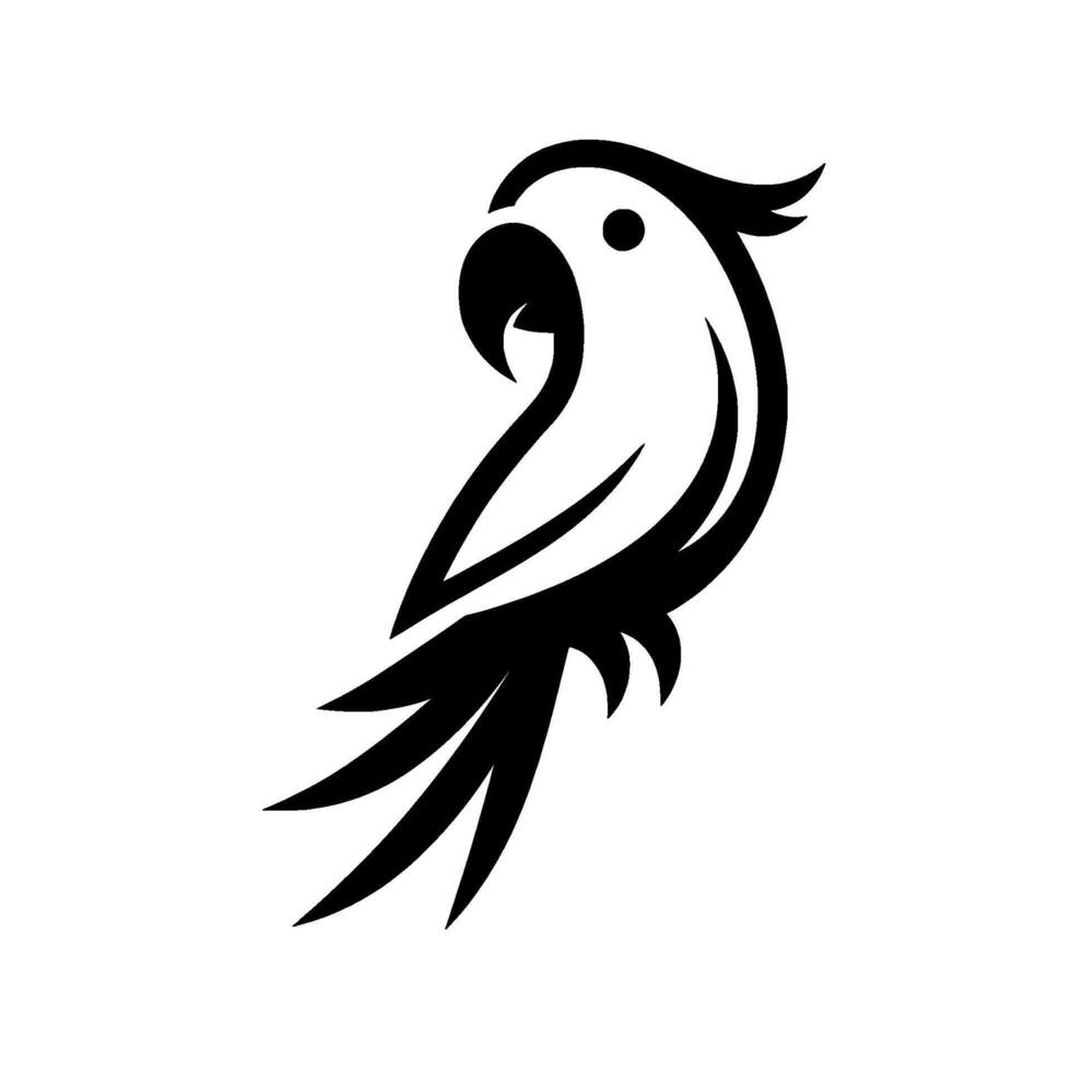 Elegant Minimalist Black and White Parrot , featuring a sleek of the avian bird with a curved beak and sharp tail feathers, set against a clean white background. vector