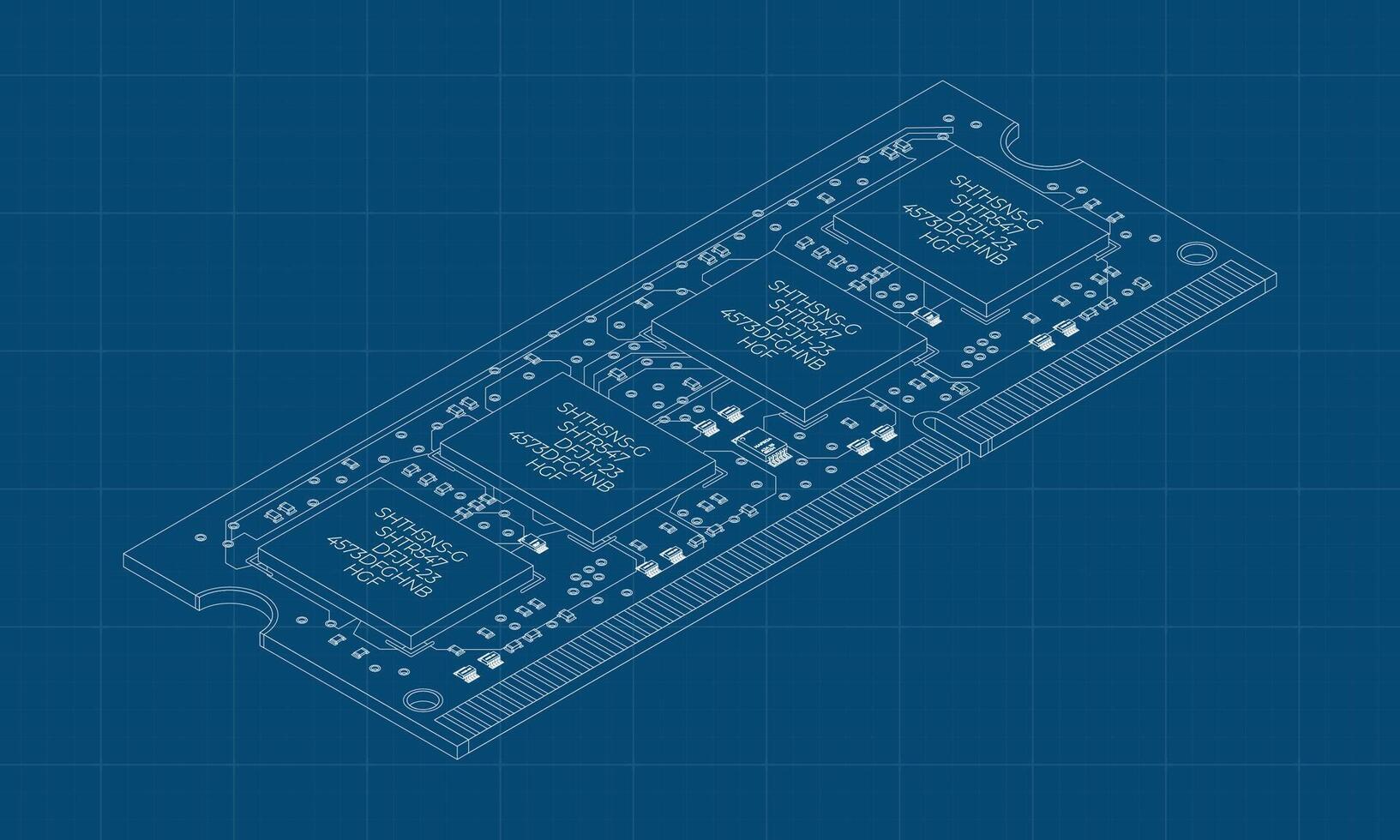 Isometric random access memory blueprint. RAM memory realistic 3d isometric. Computer hardware components. illustration Pro Vector