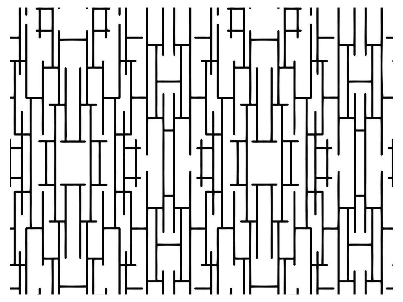 A monochrome pattern of vertical and horizontal lines creating an abstract, maze-like design with varying lengths and widths. vector