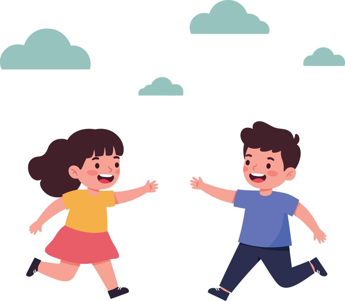 Two joyful children running towards each other in a playful setting, flat illustration Pro Vector