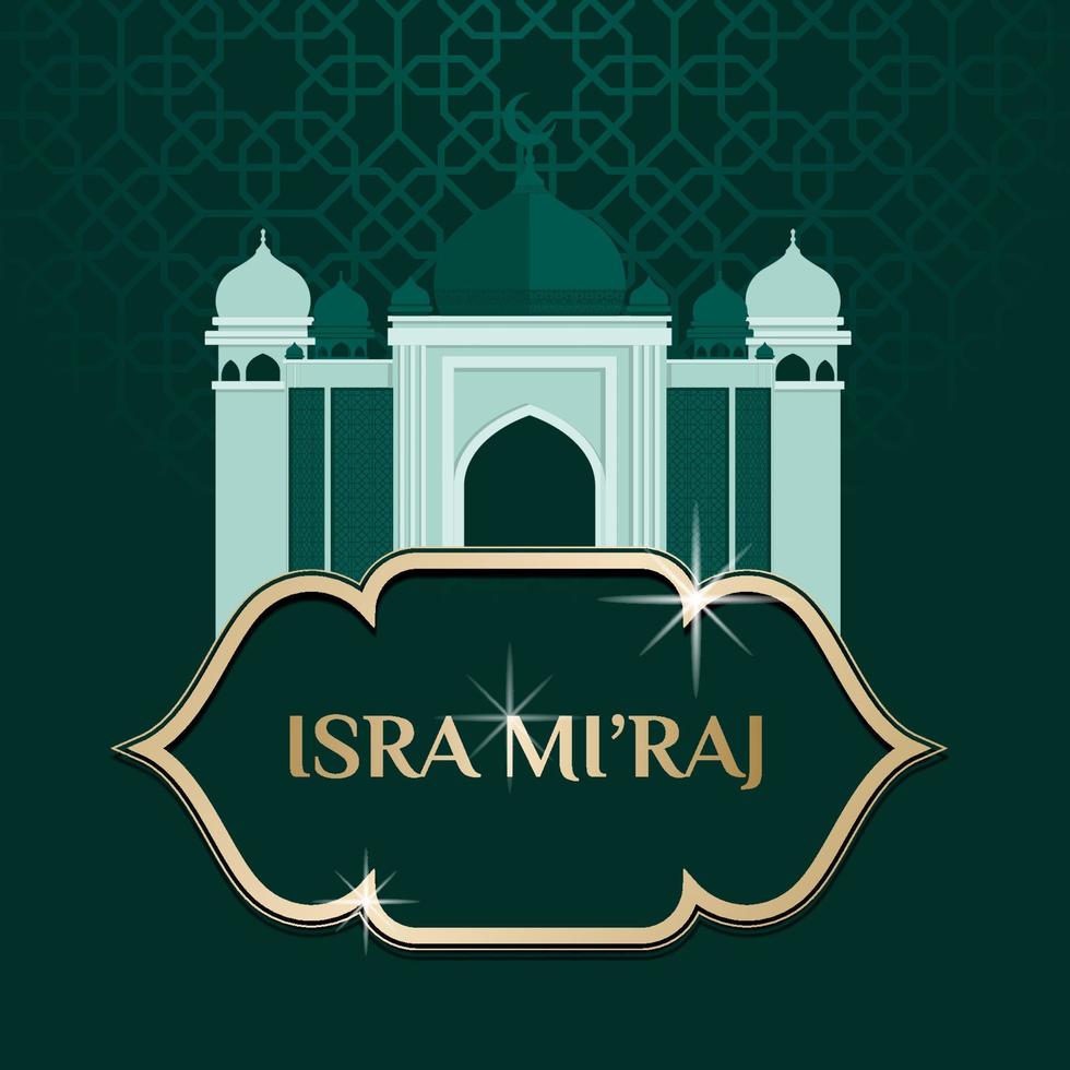 Al-Isra wal Mi'raj Night journey of the Prophet Muhammad. post feed square background. greeting frame with mosque Pro Vector