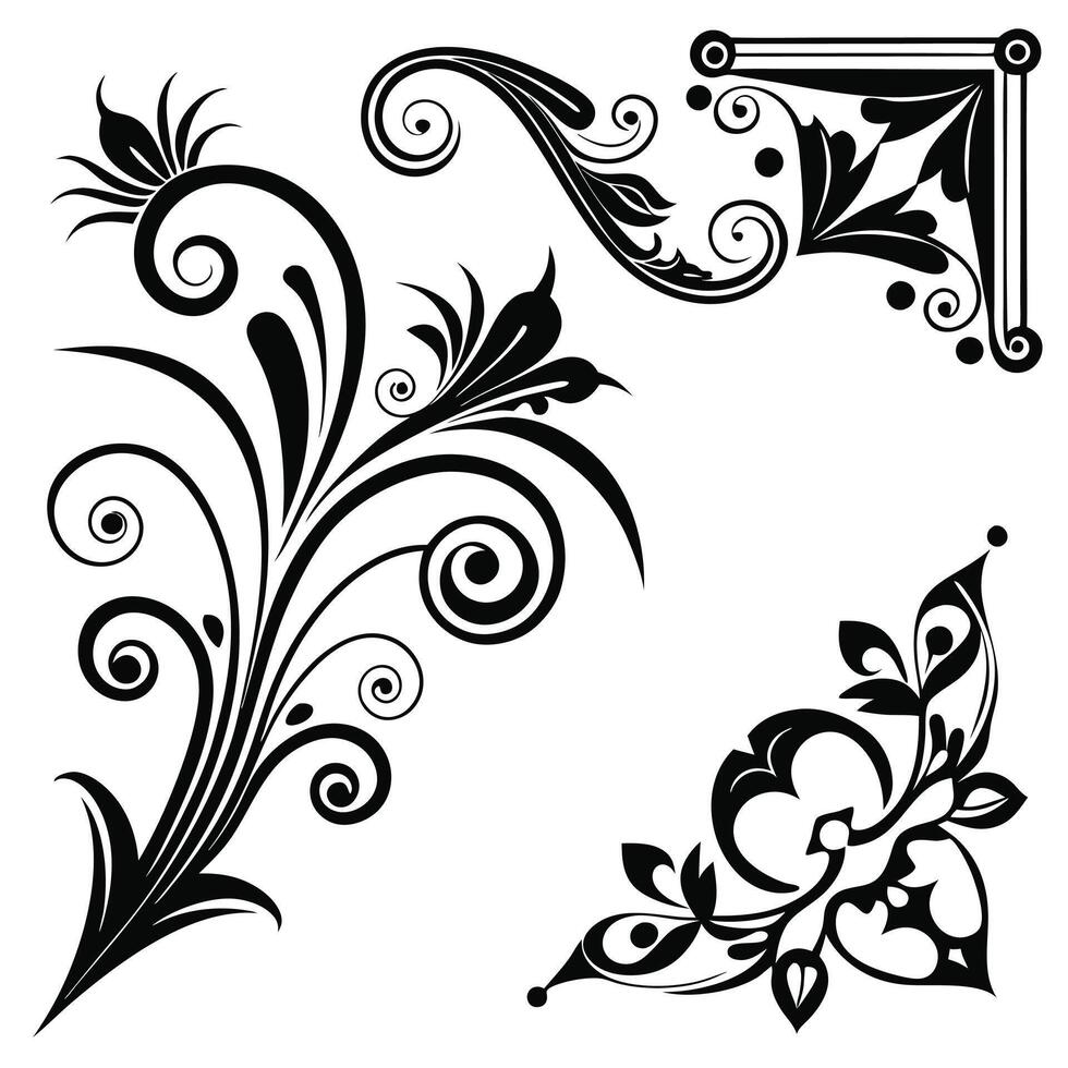 a set of decorative elements, including a flower, scroll, and scroll Pro Vector