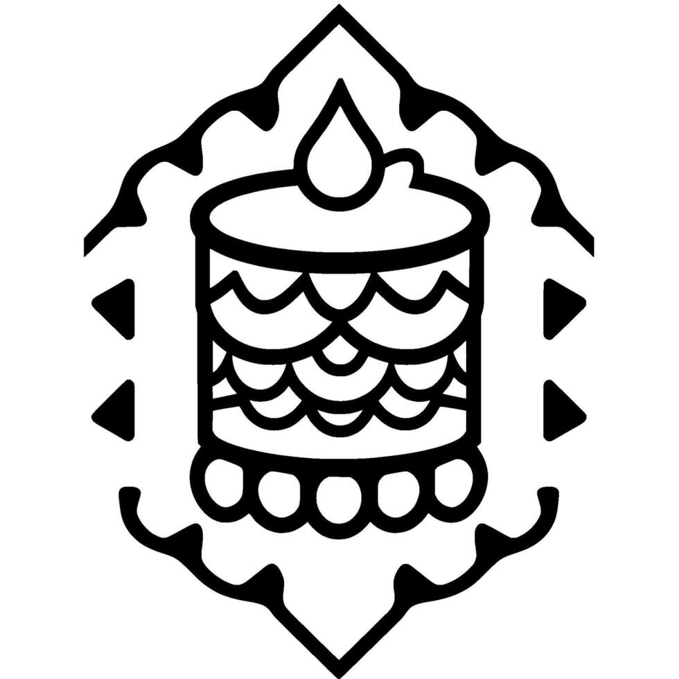 Intricate geometric black and white featuring a tiered cylindrical form with drop, enclosed within an ornamental frame. vector