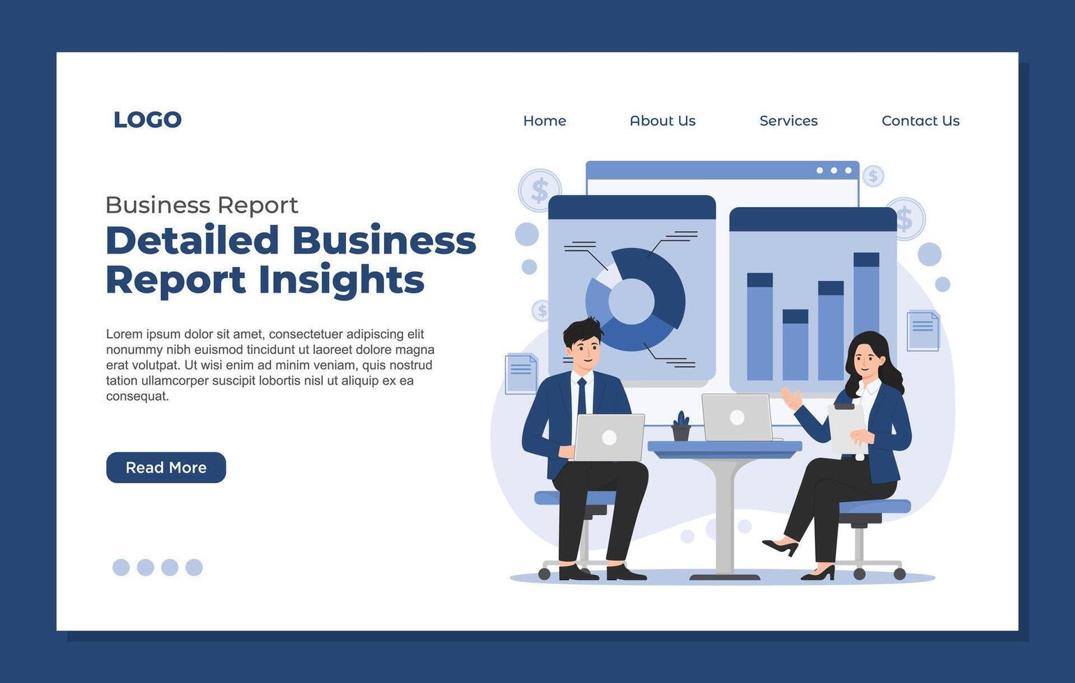 Flat design illustration concept of business data analysis. Landing page template Business report Pro Vector