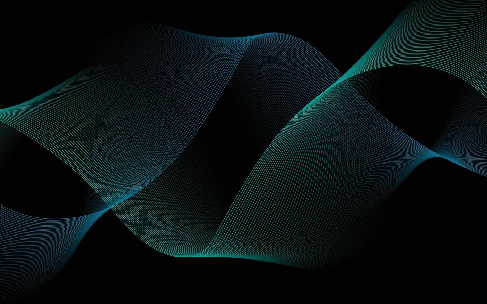 Abstract blue-green wavy line patterns on a dark background represent future technology, data and networks. Pro Vector