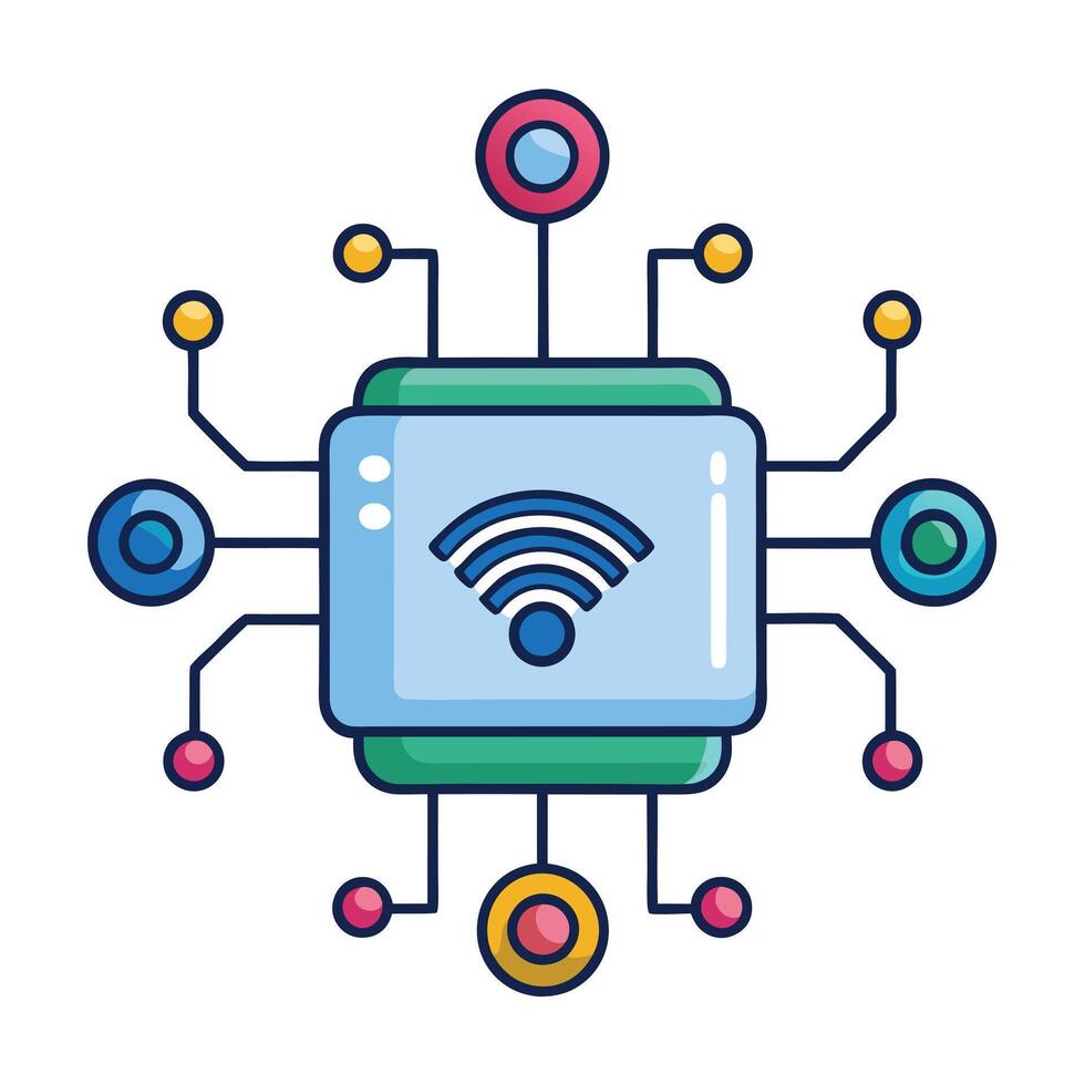 Connected Device Icon with Network Signals and IoT Device Concept Pro Vector