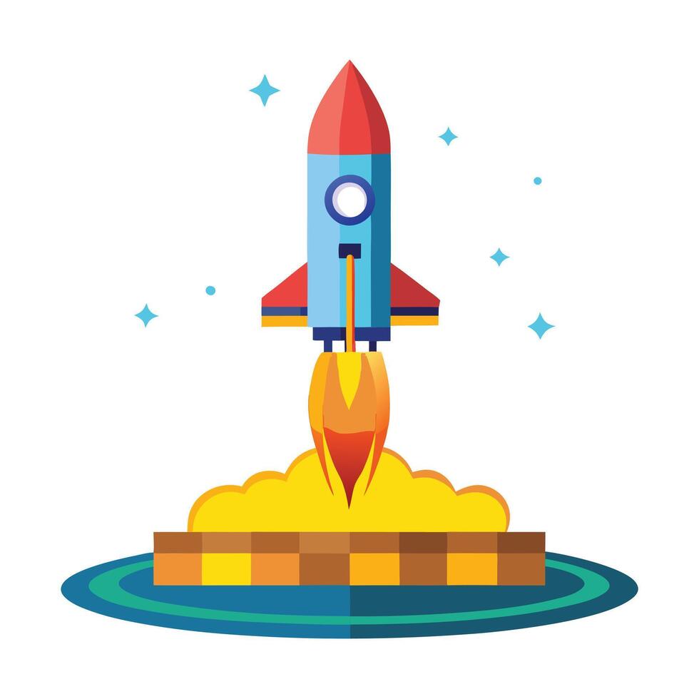 Rocket Icon Launching from a Platform and Startup Launch Concept Pro Vector