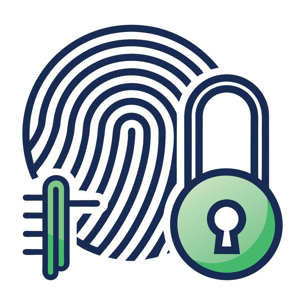 Modern Fingerprint Lock Icon with a Key and Isolated Background Pro Vector