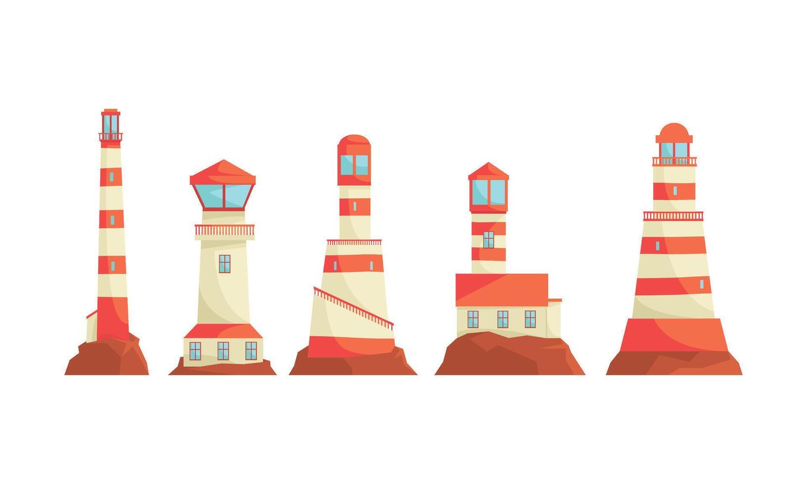 Lighthouse Structures Set. Nautical Navigation System Concept Pro Vector