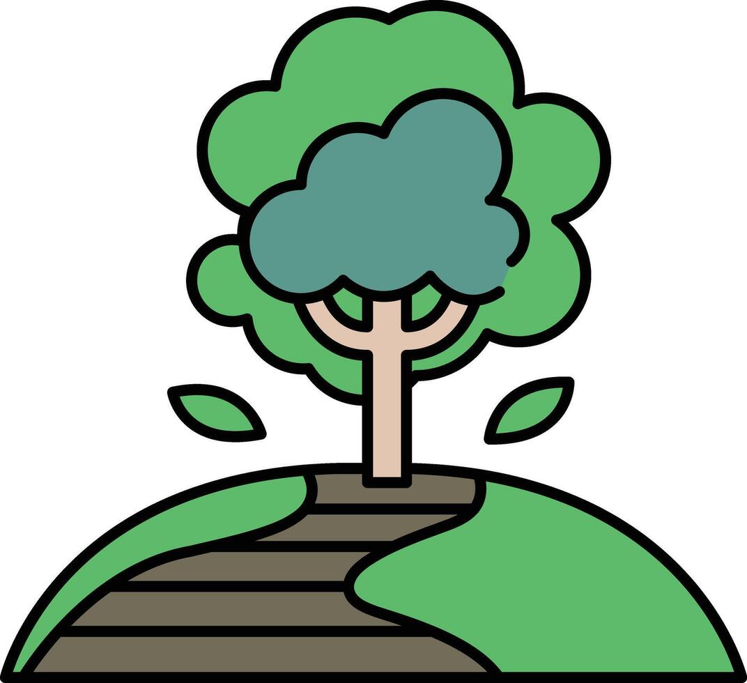 A tree is shown on a hill with a path leading to it Pro Vector