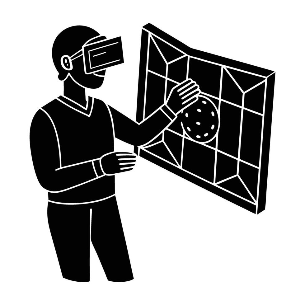 User Interacting with a Virtual Reality Interface in a Modern Immersive Digital Space vector