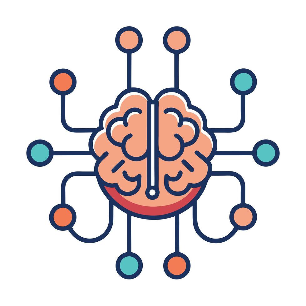 Brain Icon with Neural Network and Isolated Background Pro Vector