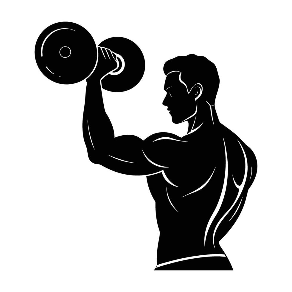 Dedicated man performing a bicep curl with precise control and balanced strength silhouette vector