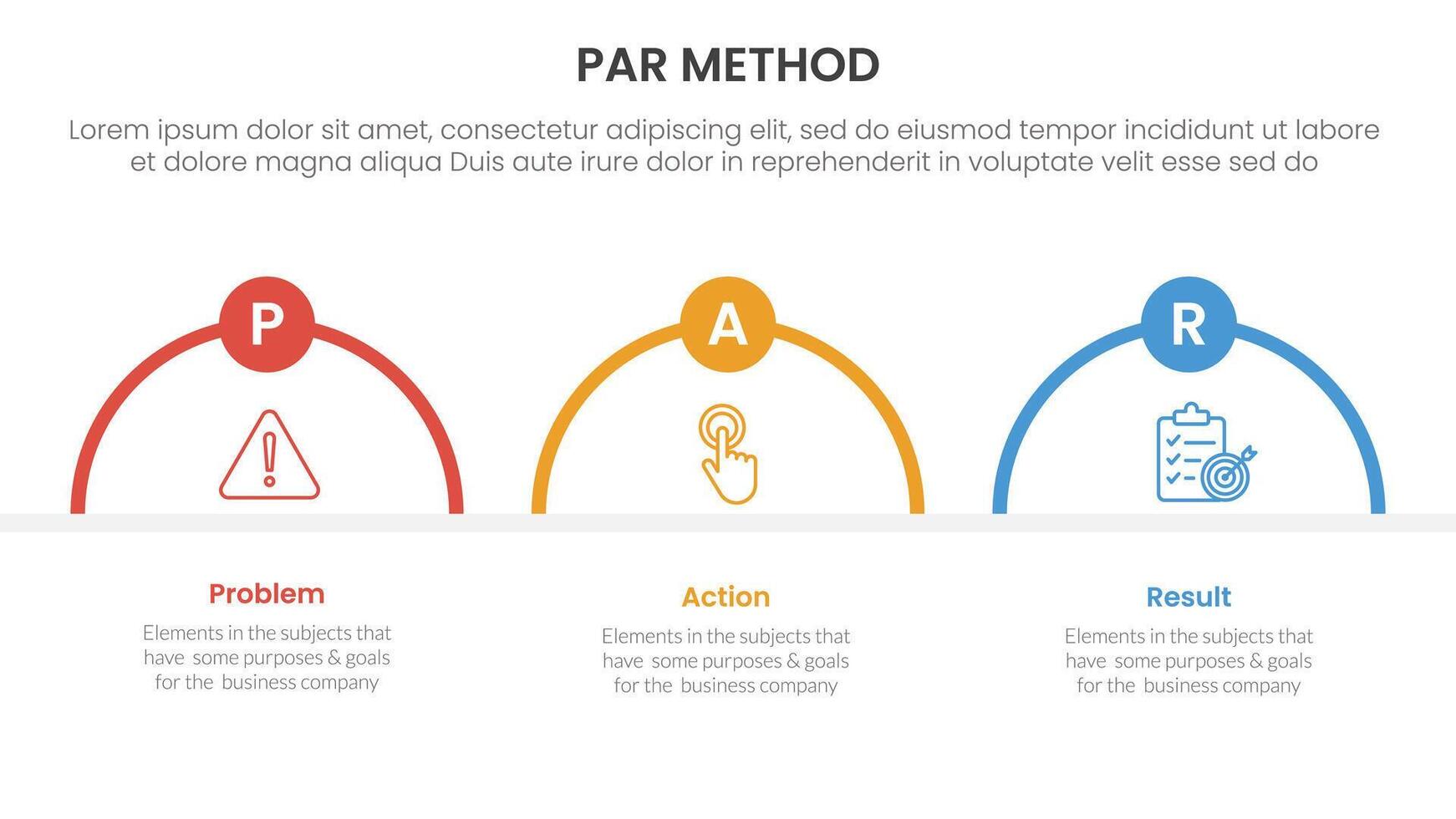 PAR method infographic 3 point with half circle shape outline for slide presentation vector