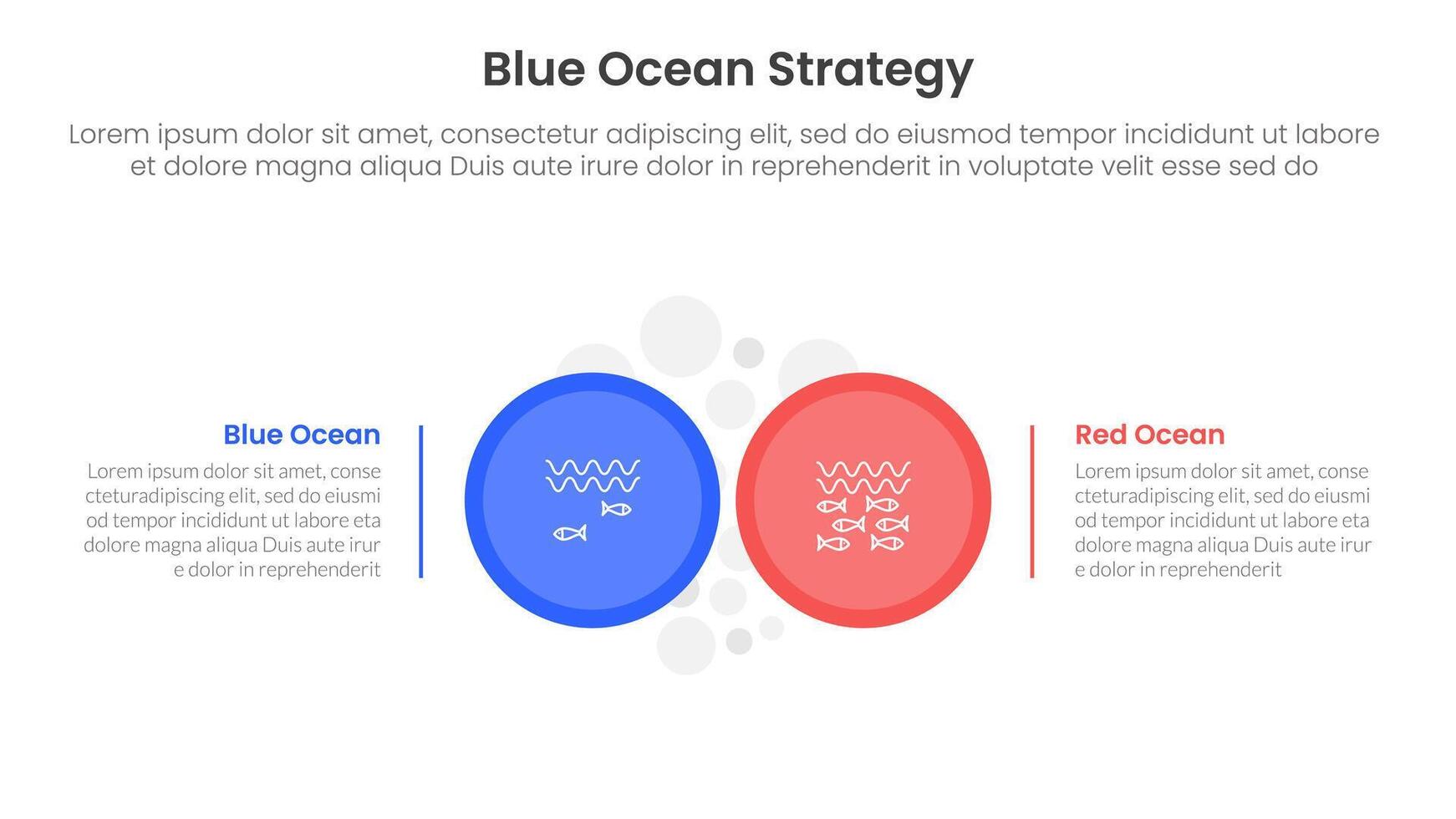 blue ocean vs red ocean strategy comparison concept for infographic template banner with big circle side by side with two point list information vector