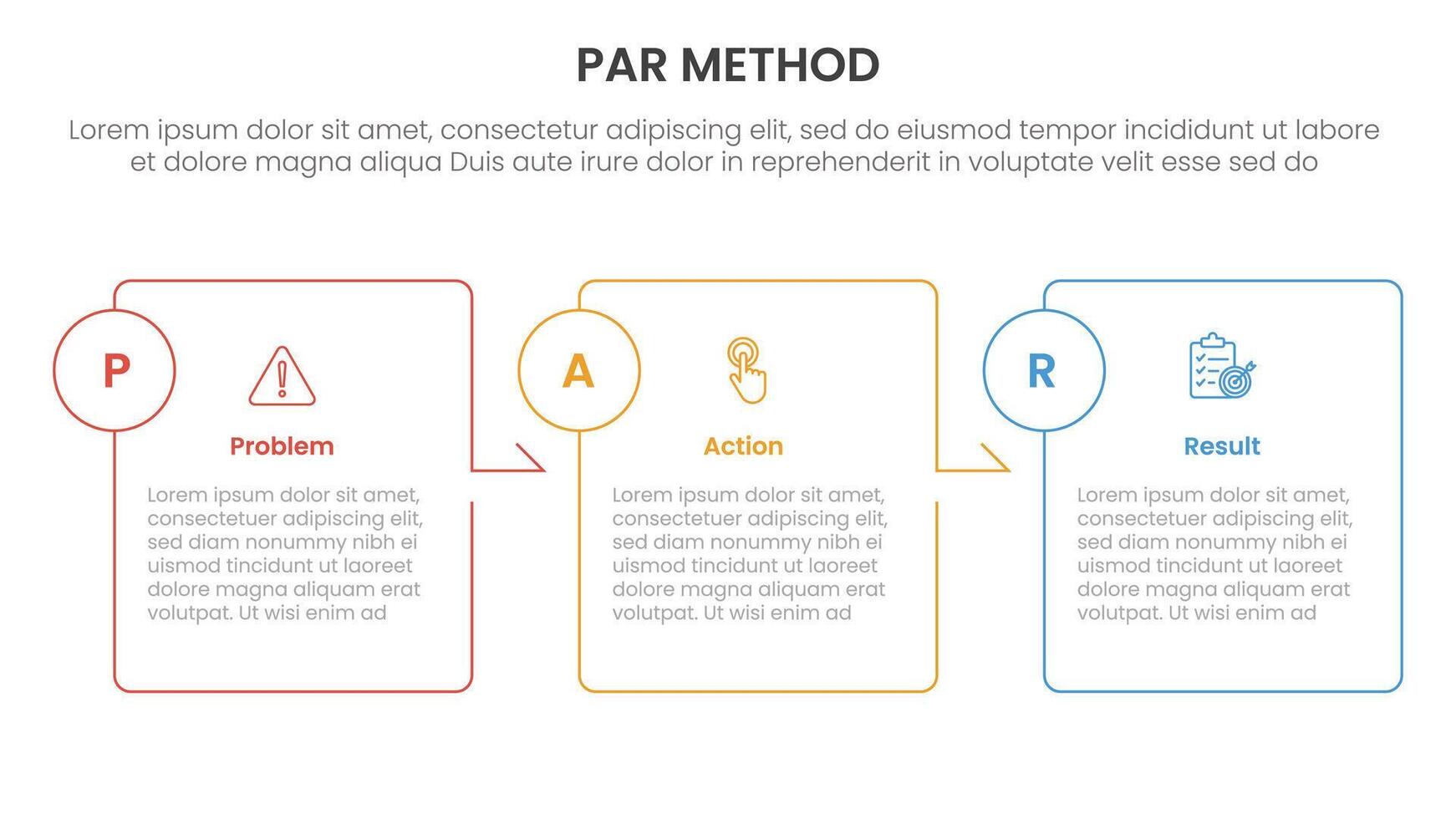 PAR method infographic 3 point with box outline table arrow right direction for slide presentation vector