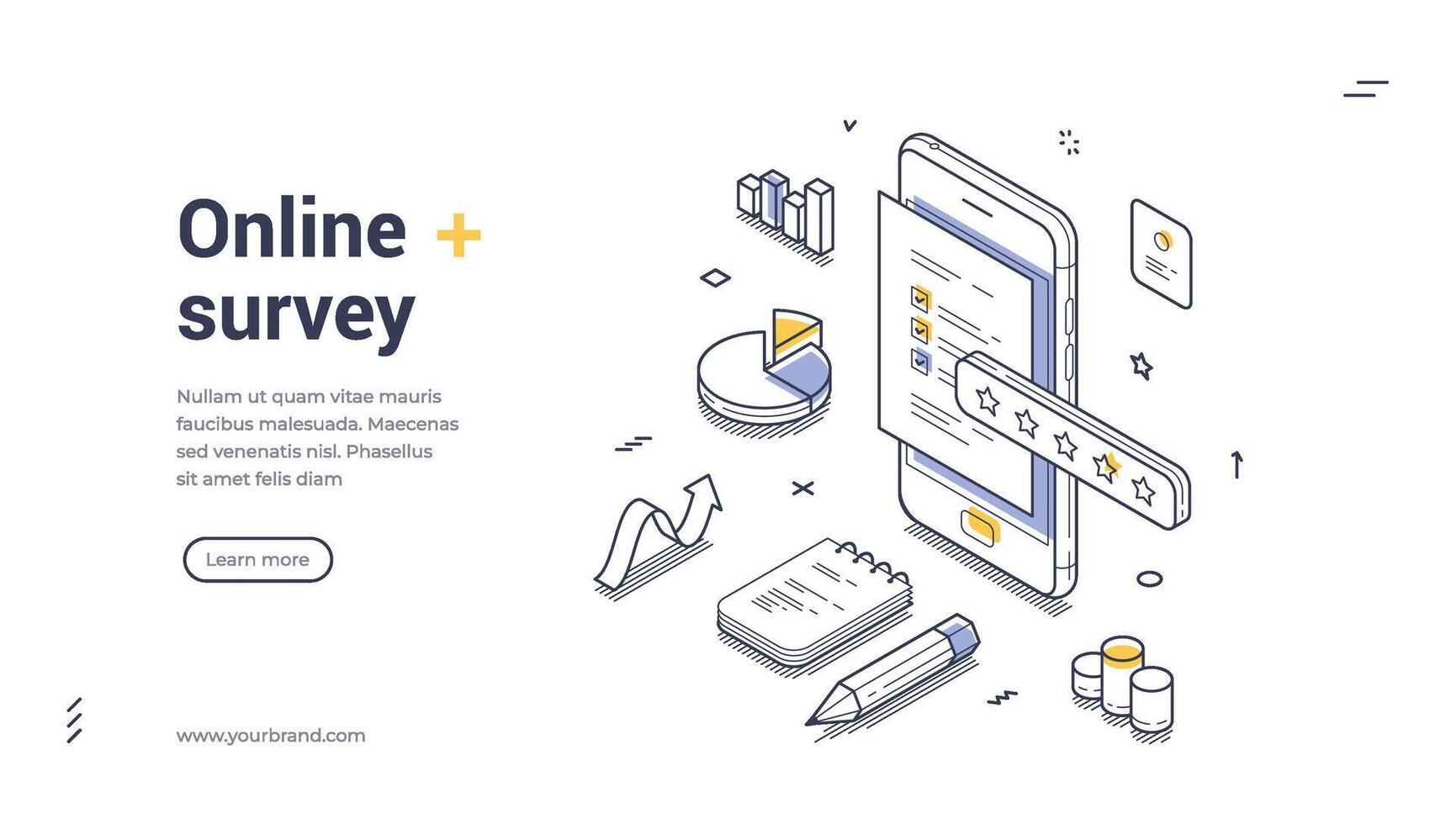 Engaging online survey banner template for effective data collection and user feedback Pro Vector