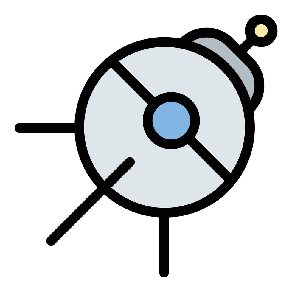 Space probe icon in flat line style representing deep space exploration data collection and scientific discovery ideal for astronomy research and space technology concepts. Pro Vector