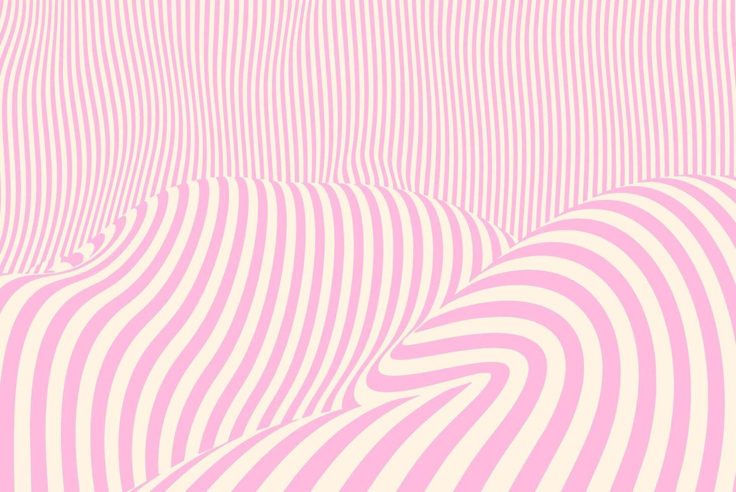 Groovy waves pattern in pink and beige creating a fluid optical illusion. Modern geometric wave pattern background with distorted flowing lines and dynamic motion effect. Pro Vector