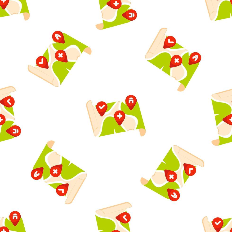 Seamless pattern with green maps showing different locations with red markers Pro Vector