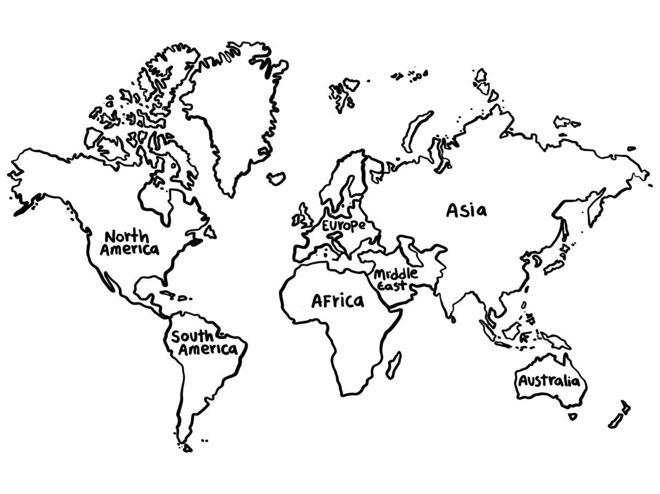 Sketch of a world map with the division of continents in a doodle style, with irregular lines and freehand strokes. Pro Vector