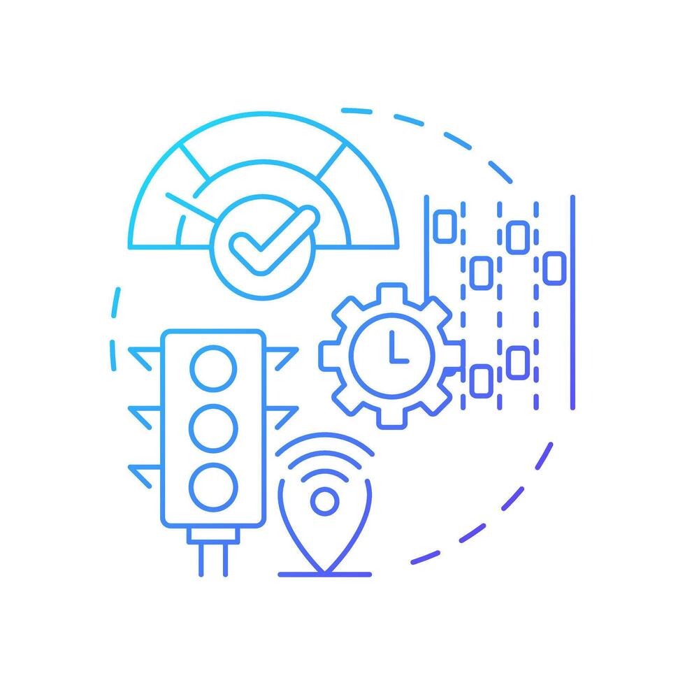 Traffic flow management blue gradient concept icon. Real time adjustments of road infrastructure. Regulation. Round shape line illustration. Abstract idea. Graphic design. Easy to use in booklet Pro Vector